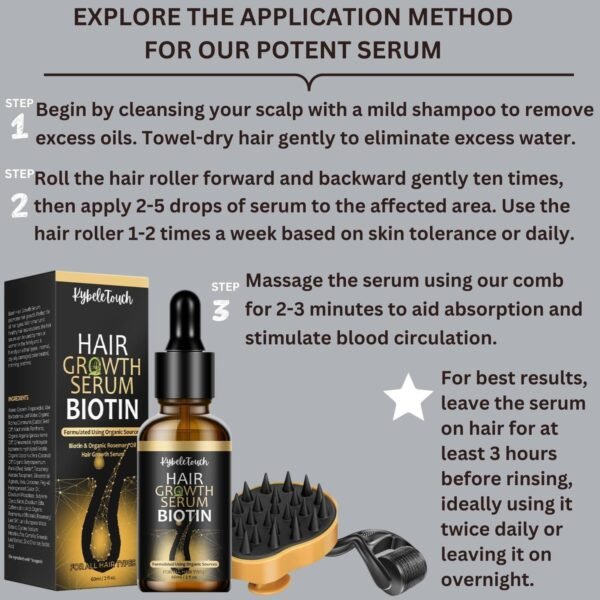 - 100% ORGANIC ROSEMARY HAIR OIL WITH BIOTIN – FOR STRONGER, THICKER, LONGER HAIR GROWTH: KybeleTouch hair serum doesn’t leave your hair feeling greasy like other hair growth oils, and it has a subtle scent, allowing you to use it throughout the day without any issues.Our Daily Hair Boost Serum is a concentrated treatment that stimulates the scalp and boosts the appearance of hair density with its ingredients, produced from certified organic oils to fortify thinning and weak hair. The distinctive blend, featuring Organic Argan, Castor, Kernel, Coconut, Shea Butter Hydrolyzed Keratin and Vitamin E, restores moisture, locking in proteins to prevent hair breakage.