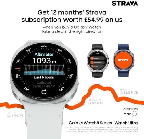 About this item Iconic Cushion design: The Galaxy Watch8 Classic boasts a timeless and cutting edge cushion design with rotating bezels and quick button, The Dynamic Lug System makes switching Watch bands easier and provides a snug, comfortable fit¹ ² Galaxy AI Powered Health Insights: Maximise productivity with the Galaxy Watch 8 Classic, Google Gemini is your conversational assistant, simply ask for help in your natural voice and get things done³ ⁴ Personalised Sleep Coaching: Track your sleep to build a better bedtime routine with personalised sleep coaching, Complete missions and practical tips to improve your sleep habits, Track your health and vascular load throughout the night⁵ ⁶ ⁷ ⁸ ⁹ ¹⁰ Advanced Fitness Tracking: Take your fitness game to the next level with this Samsung smart watch, Measure your running capacity and receive personalised coaching, Track your records and work on your health at your own pace¹¹ All-new One UI 8: Instantly access important information with the multi-info tile, Open your favourite apps effortlessly or list and manage active apps in the Now bar for a streamlined and intuitive experience