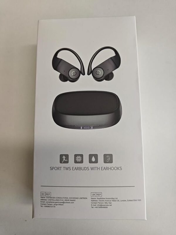 - Ergonomic Design and IP7 Waterproof: The Bluetooth earbuds come with flexible, soft earhooks and three sizes of earbuds for a perfect fit. The lightweight design reduces ear pressure for all-day comfort. The IP7 waterproof rating protects the earbuds from sweat and rain, ideal for workouts and daily use.